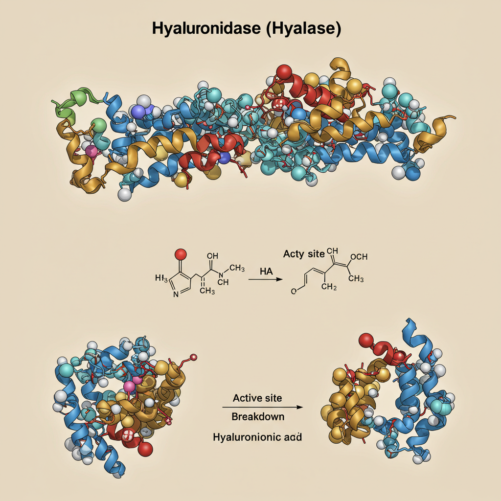 Hyaluronidase is a specialized enzyme that hydrolyzes cross-linked Hyaluronic Acid (HA). By temporarily increasing tissue permeability, it "unlocks" the filler’s structure, allowing it to be rapidly absorbed and metabolized. It's like a targeted "eraser" for HA Fillers.