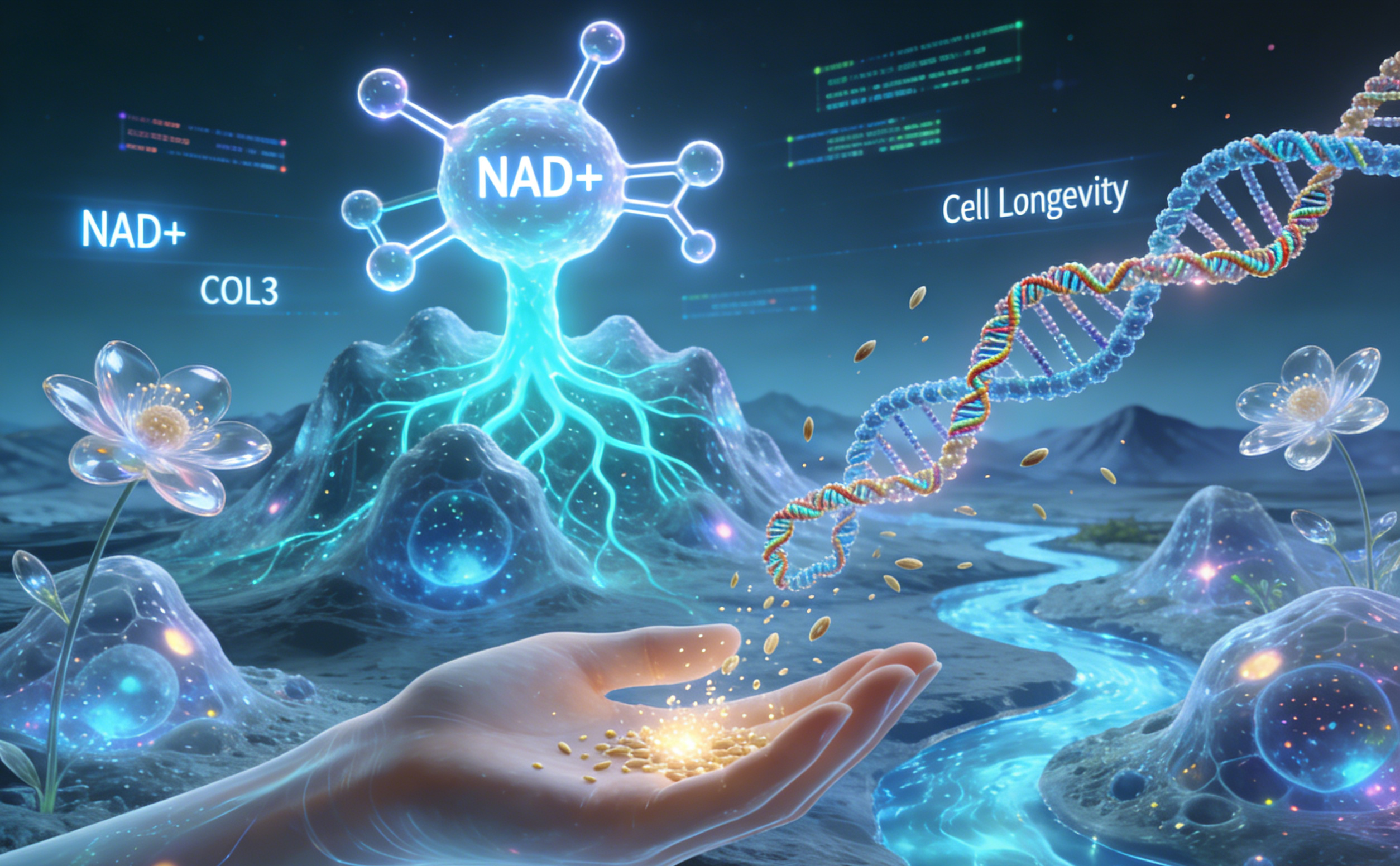 When cells are equipped with sufficient Cellular Fuel (NAD+) and anchored to a superior Bio-scaffold (Recombinant Collagen), the efficiency of Skin Repair increases exponentially.